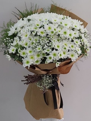 Yaklaşık 70 cm yüksekliğinde ürün beyaz papatyalar kullanılarak taba rengi ambalaj içerisine hazırlanmaktadır.
